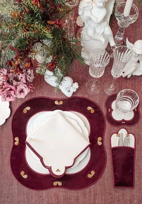 Коллекция Golden Bees – маленькое черное платье в идеально подобранном гардеробе декора праздничного стола. Выполненные в трех роскошных сочетаниях бархата и эко-кожи, предметы из коллекции создают очень привлекательный и элегантный комплект.